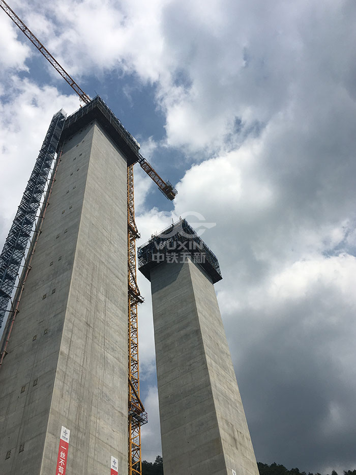 項目簡介:大石田特大橋是開平至陽春高速公路上的一座重點(diǎn)大橋,跨越山溝,最大橋高為109.7米,主墩采用智能控制液壓同步頂升模架系統(tǒng)施工,每節(jié)段澆筑高度為2-3m。