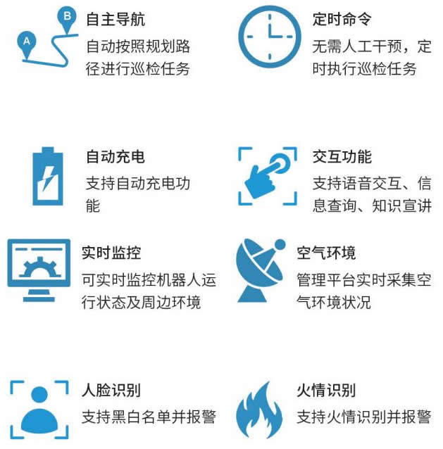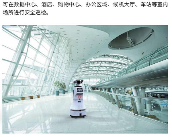 無人巡檢機器人,它是一種綜合了自主導航、音視頻智能識別、危險預警、人員識別、人體跟隨等多種智能技術相融合的綜合性安防機器人,可以協(xié)助人們完成重要場所的監(jiān)控巡邏保安工作,同時可結(jié)合固定監(jiān)控和環(huán)境信息的收集分析,構成完整的安防監(jiān)控系統(tǒng),滿足數(shù)據(jù)中心、酒店、商場、辦公區(qū)域等室內(nèi)場所的安全巡檢需求。