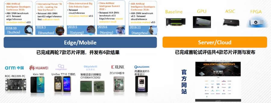 已發布三輪v0.5版本評估結果。其中端側推斷任務基準測試完成兩輪共7款芯片,云側推斷任務完成輪試評估共4款芯片