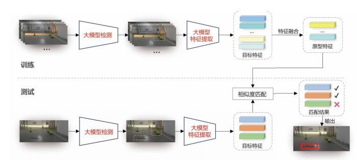 項目利用大模型檢測并提取場景中物體的特征,并使用特征融合和存儲庫技術讓算法“記住”正常場景,再通過融合特征比對的方式分辨出異常物體。該算法充分發揮了大模型跨模態、預訓練、開放性等眾多優勢,以很小的代價就能完成傳統深度學習算法無法完成的任務。