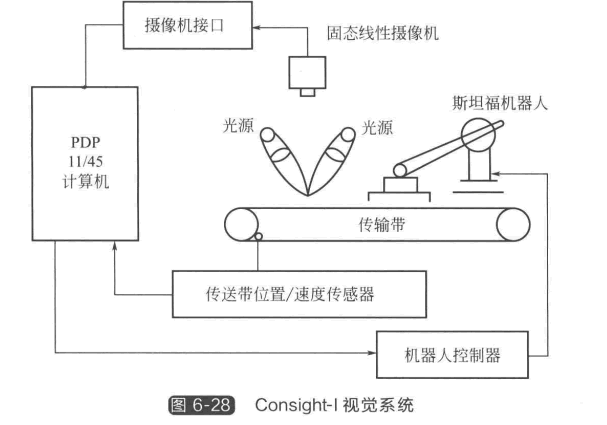 ③Consight-I視覺系統 圖6-28所示 Consight-I視覺系統,用于美國通用汽車公司的 制造裝置中,能在噪聲環境下利用視覺識別抓取工件。
