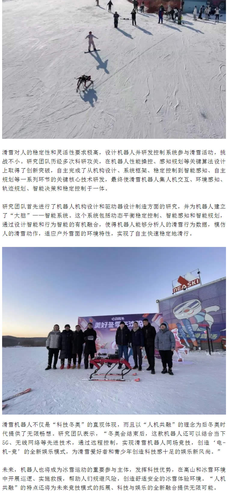 這款滑雪機(jī)器人是在“科技冬奧”的號(hào)召下,由上海交通大學(xué)G峰教授L銜,上海交通大學(xué)機(jī)械與動(dòng)力工程學(xué)院和電子信息與電氣工程學(xué)院組成的足式機(jī)器人研究團(tuán)隊(duì)研制,獲得了科技部國(guó)家重點(diǎn)研發(fā)計(jì)劃“科技冬奧”重點(diǎn)專項(xiàng)支持。